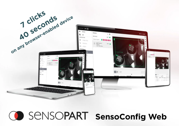 With the latest VISOR® software, version 2.12, SensoPart has introduced an important extension to the VISOR® series. The update adds SensoConfig Web, a new browser-based configuration tool for the VISOR® Code Reader sensors. With this tool, sensors can be configured easily and quickly via PC, tablet or smartphone, without the need to install separate software. In just 7 clicks and 40 seconds, your SensoPart Code Reader is configured!