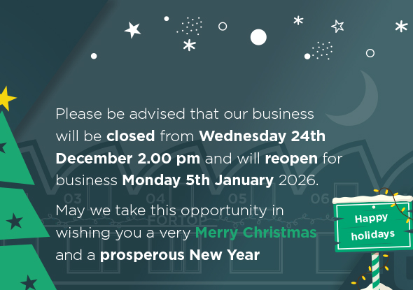Please note that our business will be closed from Wednesday 24th December 2.00 pm and will reopen for business Monday 5th January 2026.